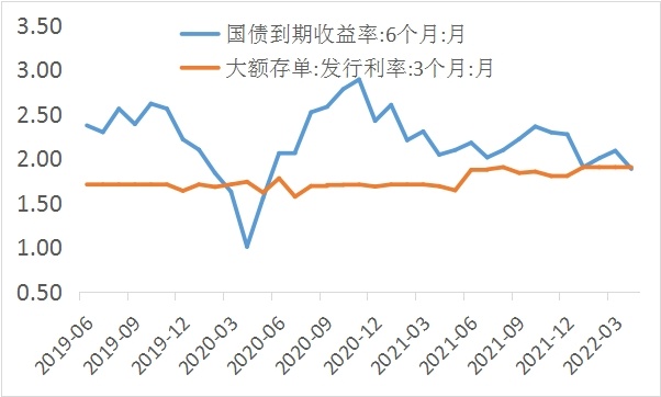 图:2019年以来国债收益率与大额存款利率 资料来源:wind