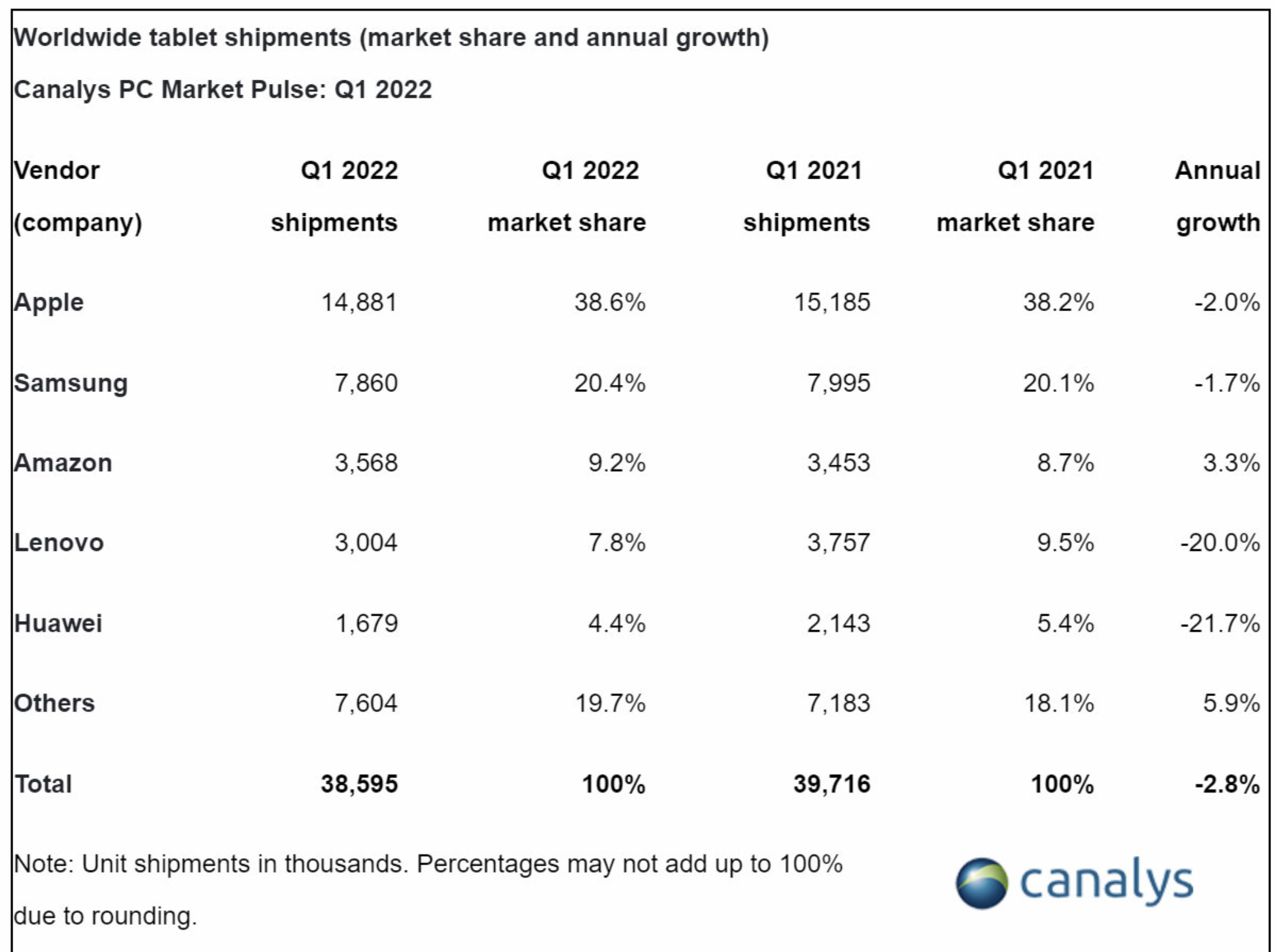 可能大家都没有想到,在2022年第一季度,苹果以18.8%的市场份额在PC市场成功超越了联想成为全球出货量最大的厂商。看到这份报告我不禁产生疑问,就算近两年的Mac系列产品的热度比往年高上不少,那也不大可能超越Windows设备吧。不过细心的网友很快就发现了这份报告的端倪,发现统计机构Canalys在统计时将平板也一并算入到统计数据中,也就是说苹果在PC市场夺得冠军并非因为Mac卖的太好,而是iPad足够出色。