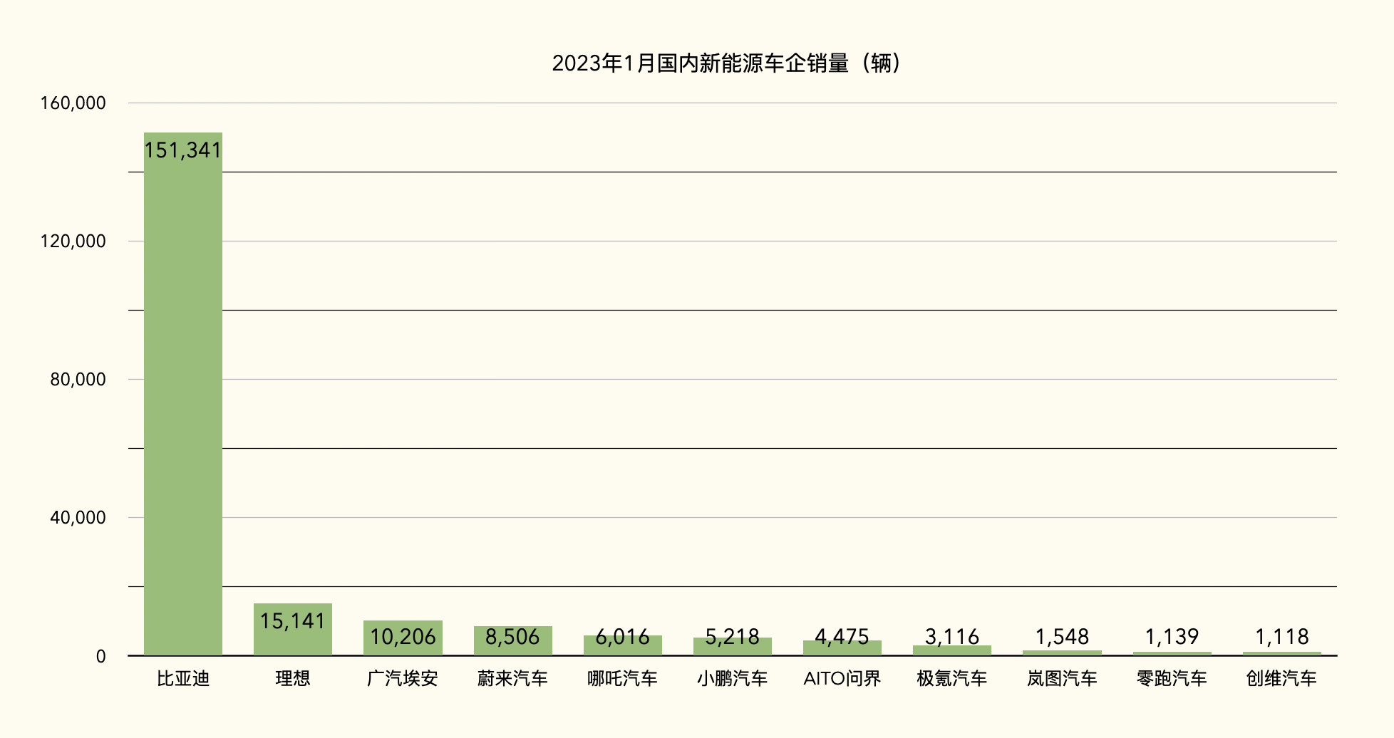 就在业内人士认为特斯拉降价掀不起价格战的时候,2023年1月份的新能源汽车销售数据出炉。