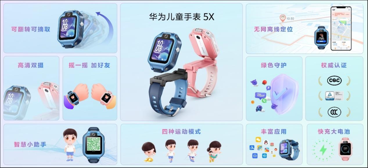 针对儿童,华为本次也发布了华为儿童手表5X Pro,其的定位能力大幅提升,搭载华为离线定位黑科技,即便手表没有网络或关机状态,也能通过智能关怀app查看孩子的位置信息。高频次秒级定位、室内楼层级定位和越用越准的AI定位2.0算法,让定位精度更进一步。
