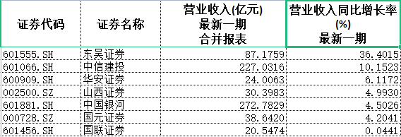 从营业收入增速来看,2022年前三季度,41只券商股中,东吴证券、中信建投、华安证券、山西证券、中国银河、国元证券、国联证券7家券商机构的营业收入实现同比正向增长。东吴证券以高达36.4%的增速位列券商股之首。华安证券、山西证券、中国银河、国元证券、国联证券5家券商2022年前三季度营业收入的增速只有个位数。