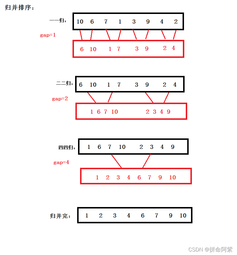 int gap = 1;//gap为每组数据的个数,每次翻倍