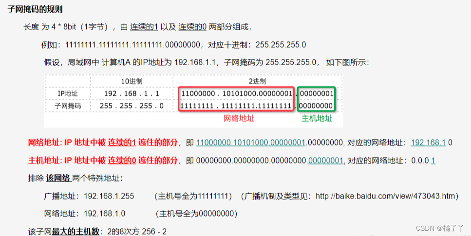 (1)二进制表示:11111111.11111111.11111111.00000000