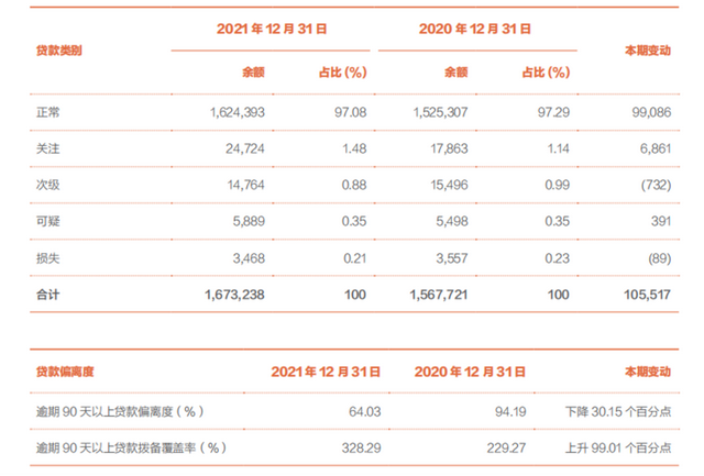 需要注意的是,北京银行关注类贷款余额从2020年末的178.63亿元增长到2021年末247.24亿元,占比从1.14%大幅提升到1.48%,资产质量后续承压。