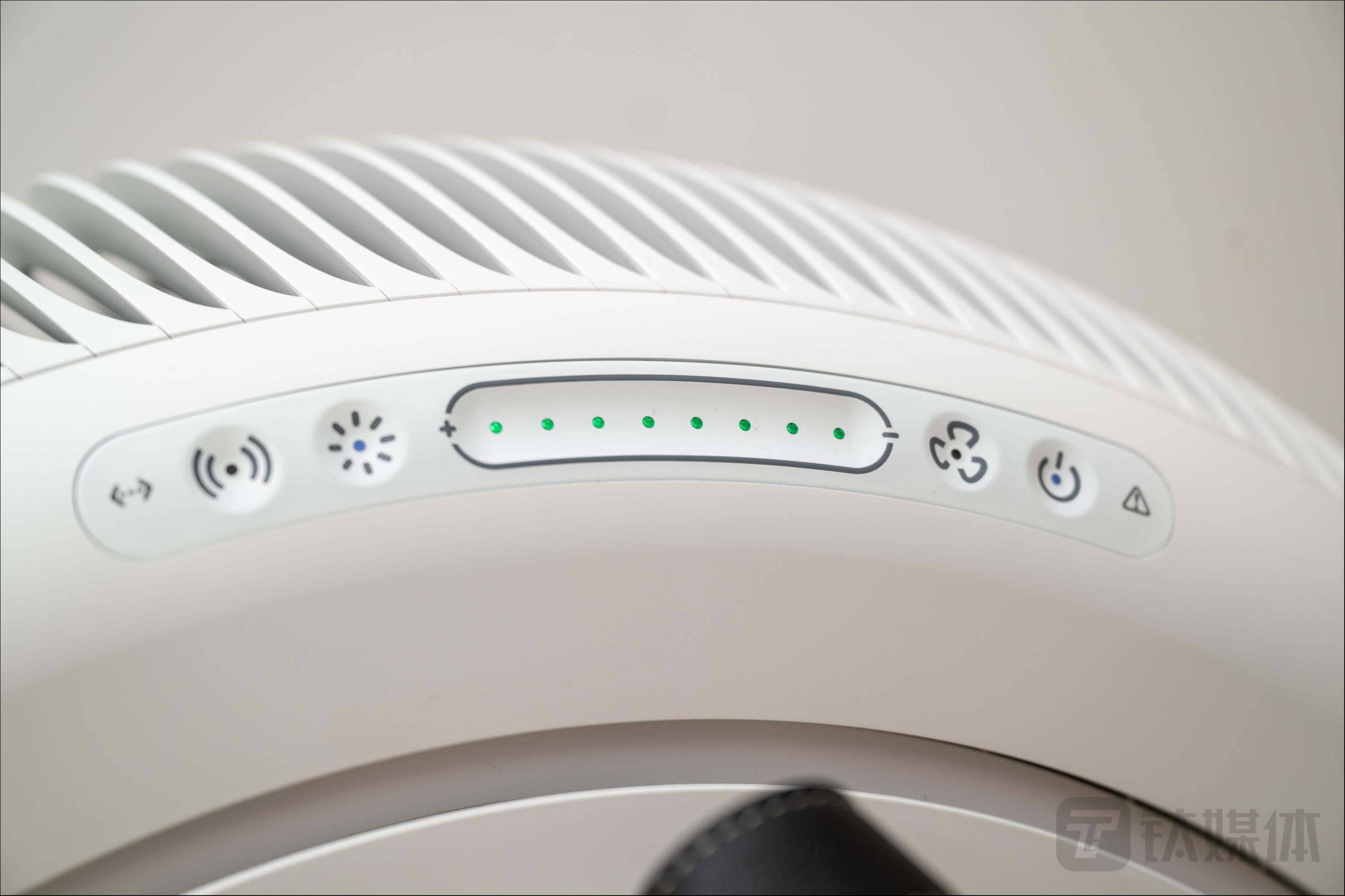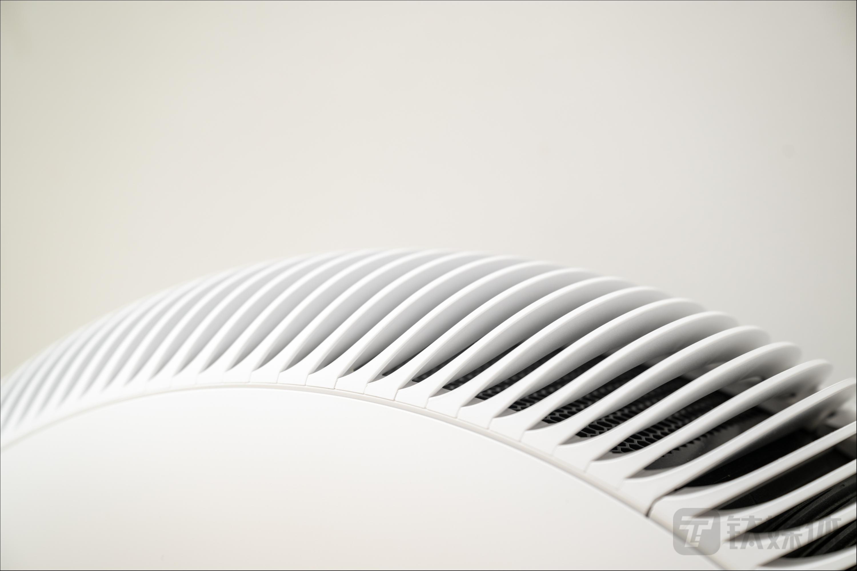 在核心的性能方面,Atem X的出风口采用环形设计,气流通过四周吸入机身内进行净化,再从上方的排气孔位斜射入空气当中,以此来达到空气净化的能力。