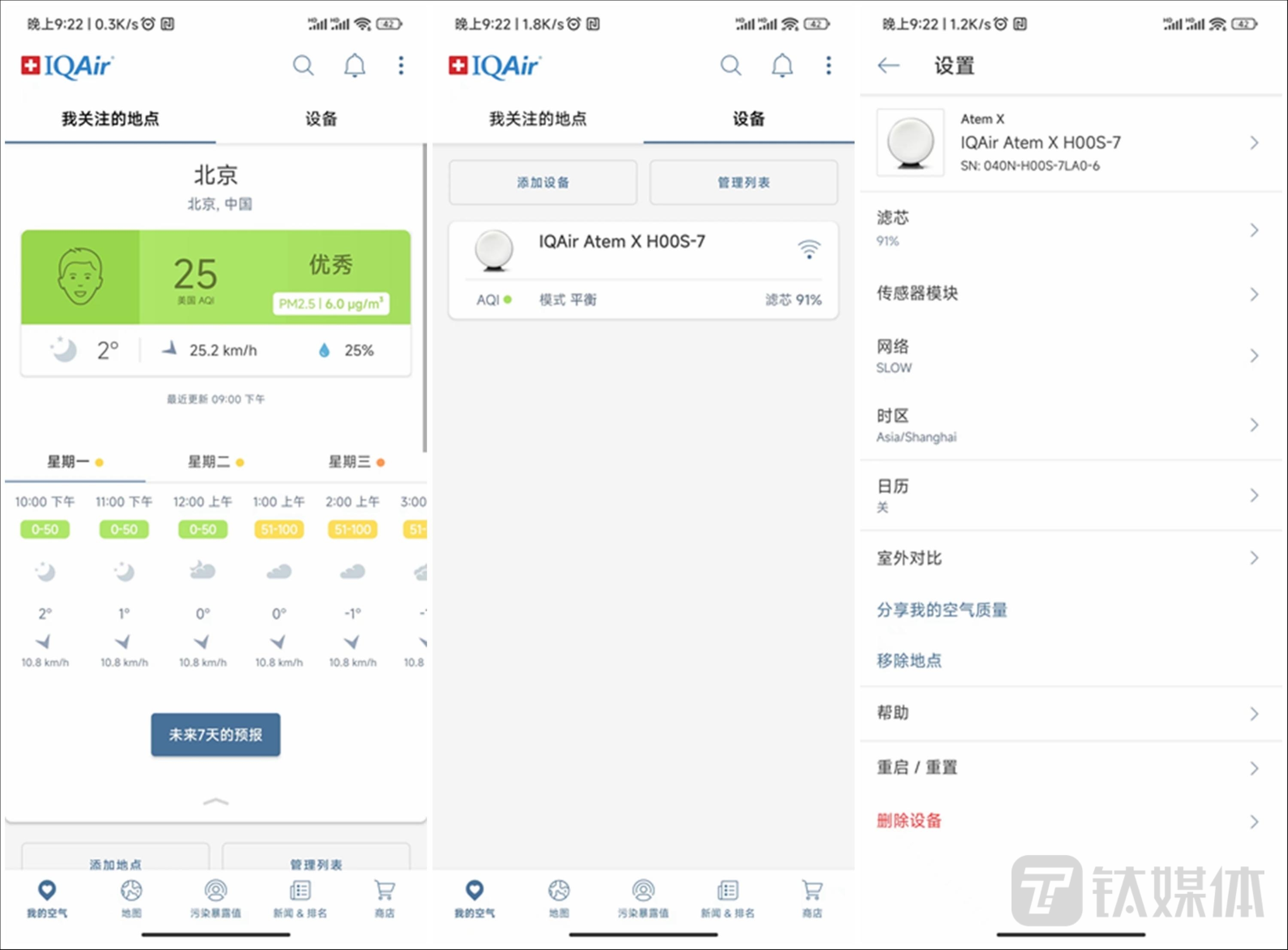 App的连接方面,Atem X则没有延续之前独立的Atem控制App,而是将产品直接集成在了AirVisual App当中,这点必须好评,因为AirVisual App中的主体内容其实是全球范围内的环境质量信息,而且数据更新非常及时,平时在手机中作为周边空气环境的参考很合适,如今加入了设备控制功能,让App的功能进一步扩展。