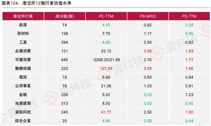 从12个港交所行业分类来看,经历了“反垄断”“防治资本无序扩张”等监管规范的互联网行业整体盈利能力回落至相对低位,但随着监管设置“红绿灯”,互联网发展步入规范的新阶段,互联网公司的盈利能力有望低位回升。