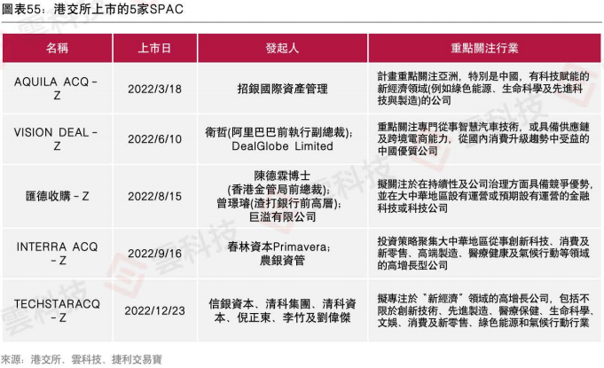 2022年港交所引入了SPAC制度,成为继美国、新加坡等资本市场后,又一个引入SPAC上市机制的主流资本市场。香港市场SPAC具有上市时间短、上市成本低、上市门槛低、减低不确定性四大优势。2022年,港股共有5家SPAC成功挂牌上市,首家SPAC于3月上市。
