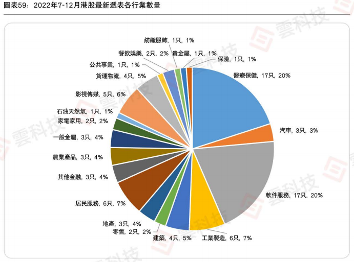 2022年,港股新股市场有三大特点:第一,中概股回归潮继续,年内有11只新股为中概股回归港股上市;第二,来自医疗保健行业新股数量最多,达到23只;第三,上市新股主要来自中国内地,其中北京、广东、上海数量最多。