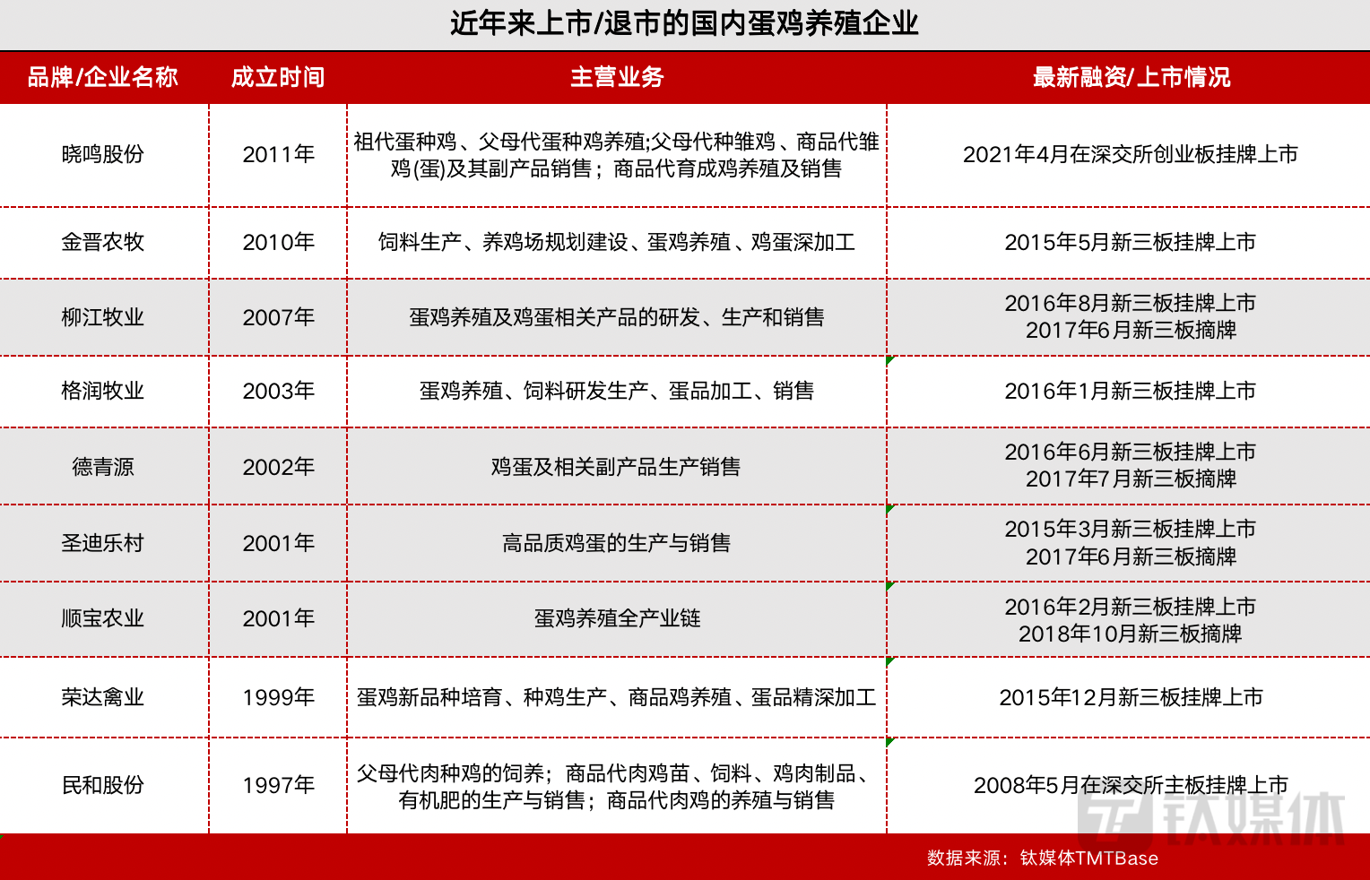 2015年至2016年,德青源、圣迪乐村、格润牧业、荣达禽业、顺宝农业、柳江牧业等以鸡蛋生产、销售为主的蛋鸡养殖企业,掀起了一股新三板上市潮。