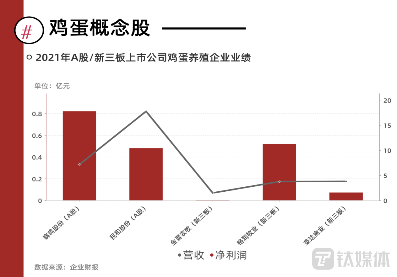 这种共识我们也能从其他方面得到印证。钛媒体APP梳理几家国内较大蛋鸡上市公司发现,他们的主营和利润来源主要聚集在各代种鸡养殖、饲料等蛋鸡产业的上中游环节,而不是鸡蛋生产这一业务。