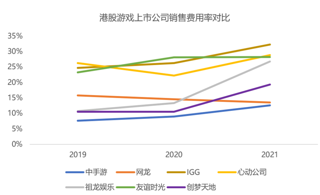 在港股游戏上市公司中,中手游的销售费用率处于比较低的水平,过去三年公司平均销售费用率约10%。