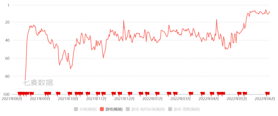 同时该游戏排名不断上升,最近一个月跻身iPhone游戏畅销榜前10名。从数据表现来看,《无尽的拉格朗日》极有可能成为网易继《率土之滨》之后又一个SLG爆款产品。