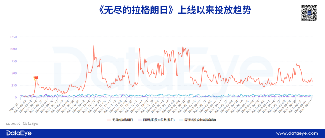 DataEye-ADX投放数据显示,年初至今,网易投放素材总数已超过21年全年的70%。