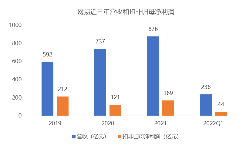 2022年Q1,网易游戏业务超预期,在线游戏收入172.7亿元,同比增长15.3%。