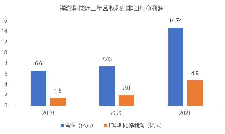 禅游21年营收翻倍达14.7亿元,扣非归母净利润达4.85亿元,增幅超130%。