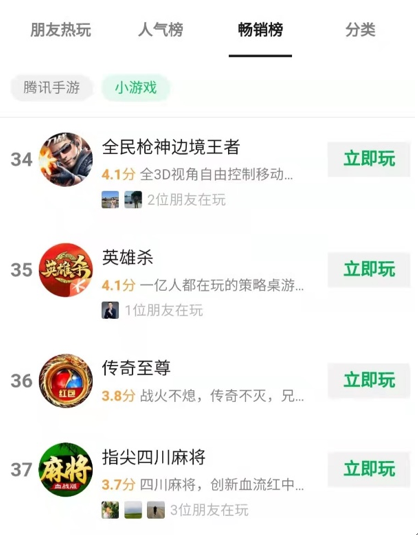 其二,是微信小游戏,目前三七、网易等厂商已经乘着该流量风口“大肆捞金”。