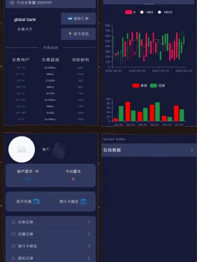 除了让受害者直接往APP里充钱,据张鹏介绍,还有一种吸金方式是让受害者往特定的银行卡号里充钱,而这个充值结果会在对应的APP或网页显示出来。就像前文提到的受害者小白,他的五次充值都是根据对方提供的银行卡号把钱转到了不同的卡上。
