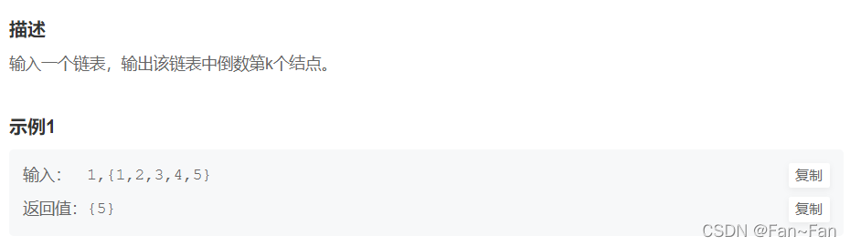 链表中倒数第k个结点_牛客题霸_牛客网 (nowcoder.com)