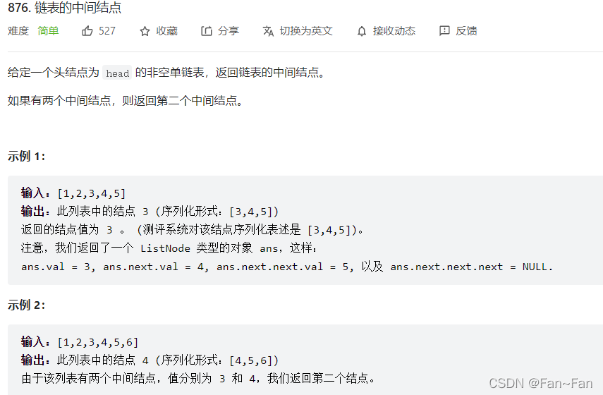- 链表的中间结点 - 力扣(LeetCode) (leetcode-cn.com)