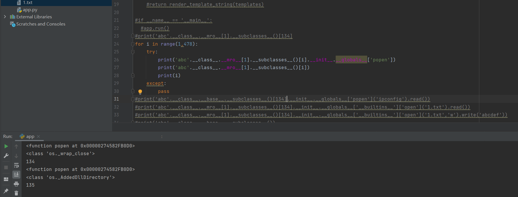 print('abc'.__class__.__base__.__subclasses__())这两者一样)