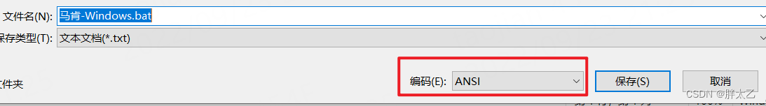 2、右键编辑 **.bat **文件,输入下面的命令,另存为编码格式为 “ANSI”