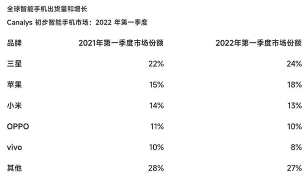 从一季度市场出货量来看,全球智能手机品牌除三星、苹果外,国产品牌市场份额下滑达到4%,且各家无一幸免。