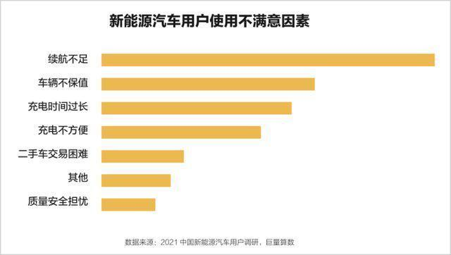 根据中国电动汽车百人会和巨量算数联合发布的《中国新能源汽车市场洞察报告2021》,当前消费者购买新能源汽车最关注的核心要素就是续航、使用成本、充电时间、安全等要素。其中,续航问题位居首位。