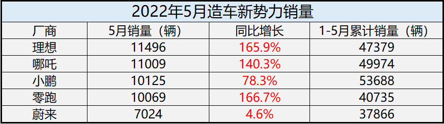 近日,造车新势力包括理想、哪吒、小鹏、零跑、蔚来先后公布了5月份交付量。总体看来5月新势力车企销量大幅度回暖,有4家车企单月销量破万辆,蔚来销量7024辆,不过也实现了同比增长。