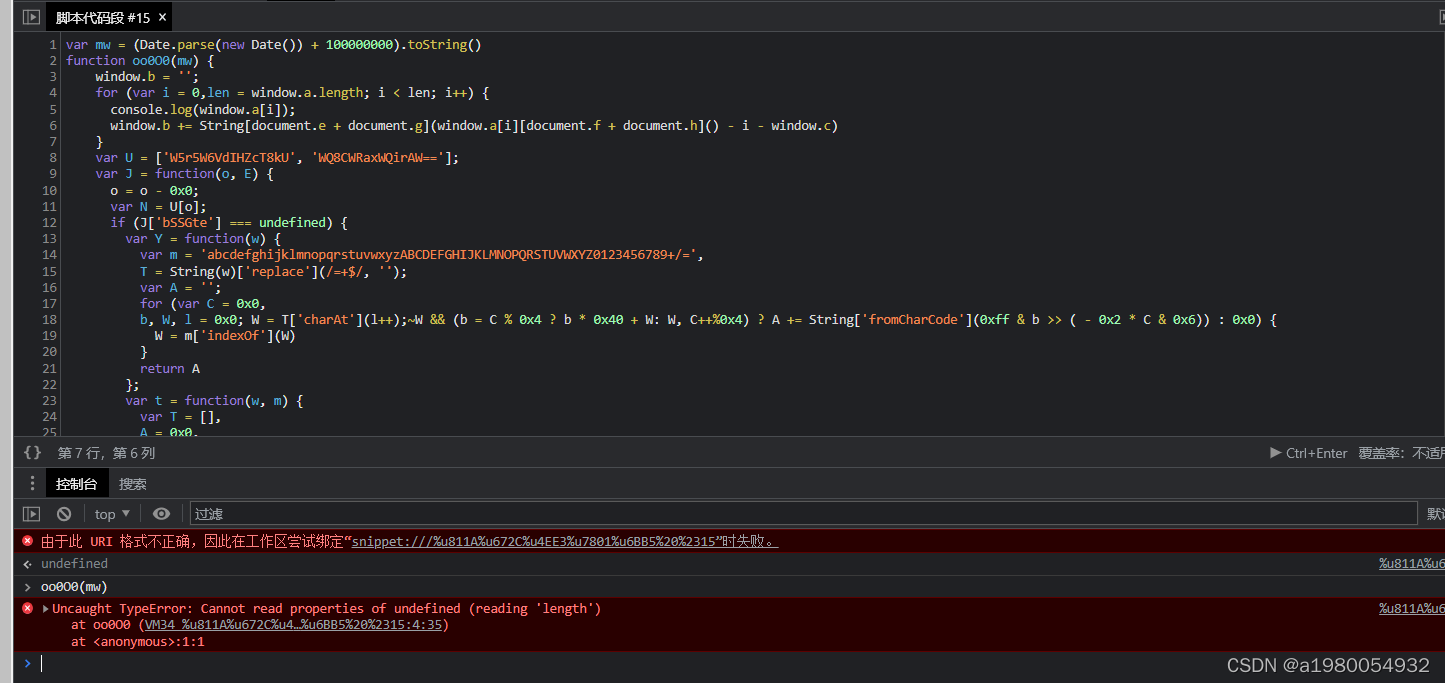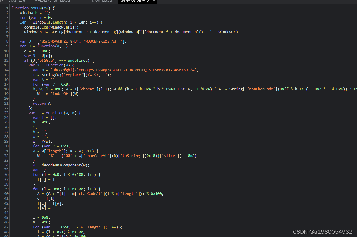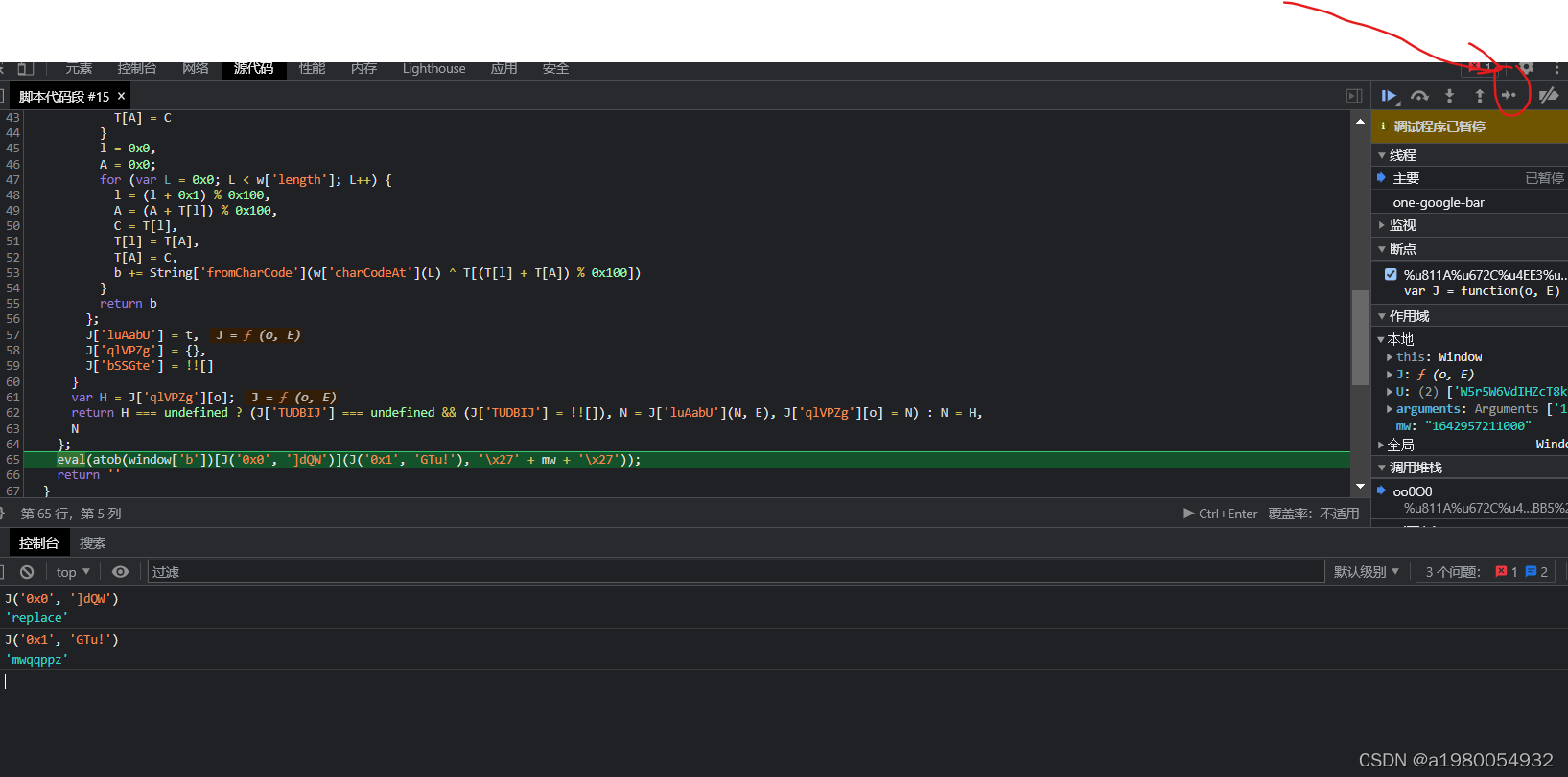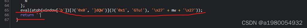 那65行代码一定是执行了什么,那我们要将这行代码给弄清楚,这行代码还是被混淆了,我们要一步步拆开它,再还原它,