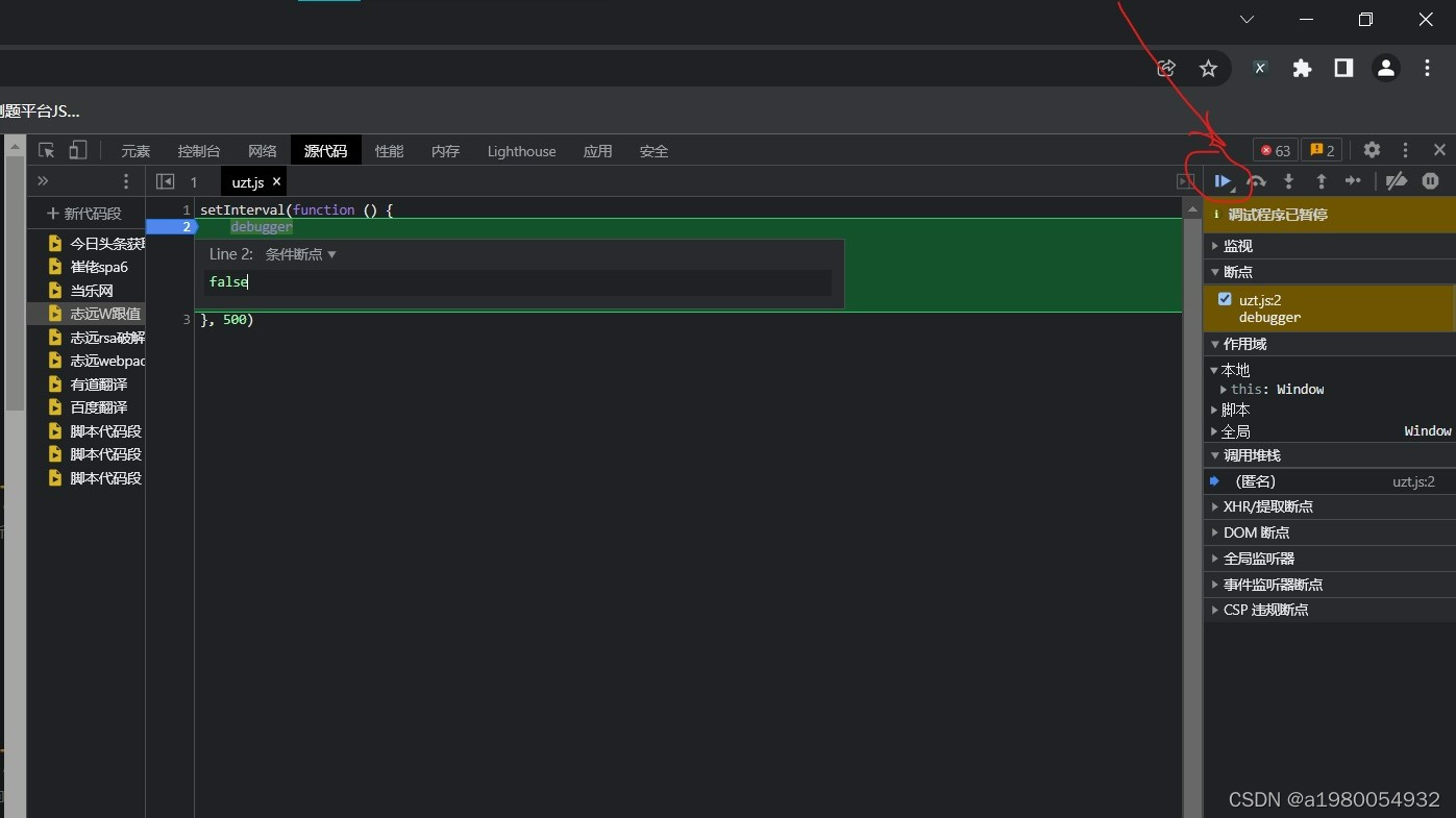 随便跳转到一页,让它重新发一次请求,发现在断点处断住了,