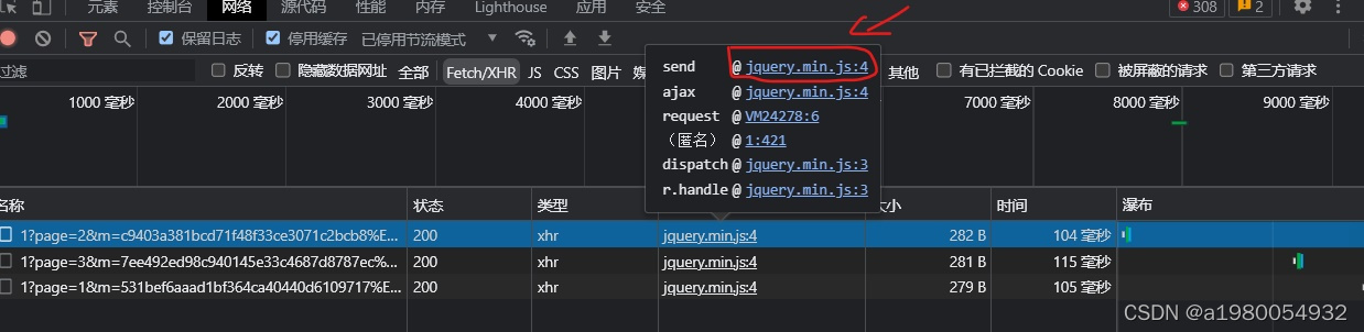 可以看见数据都是get请求得到的,观察它们之间的网址,m就是加密参数