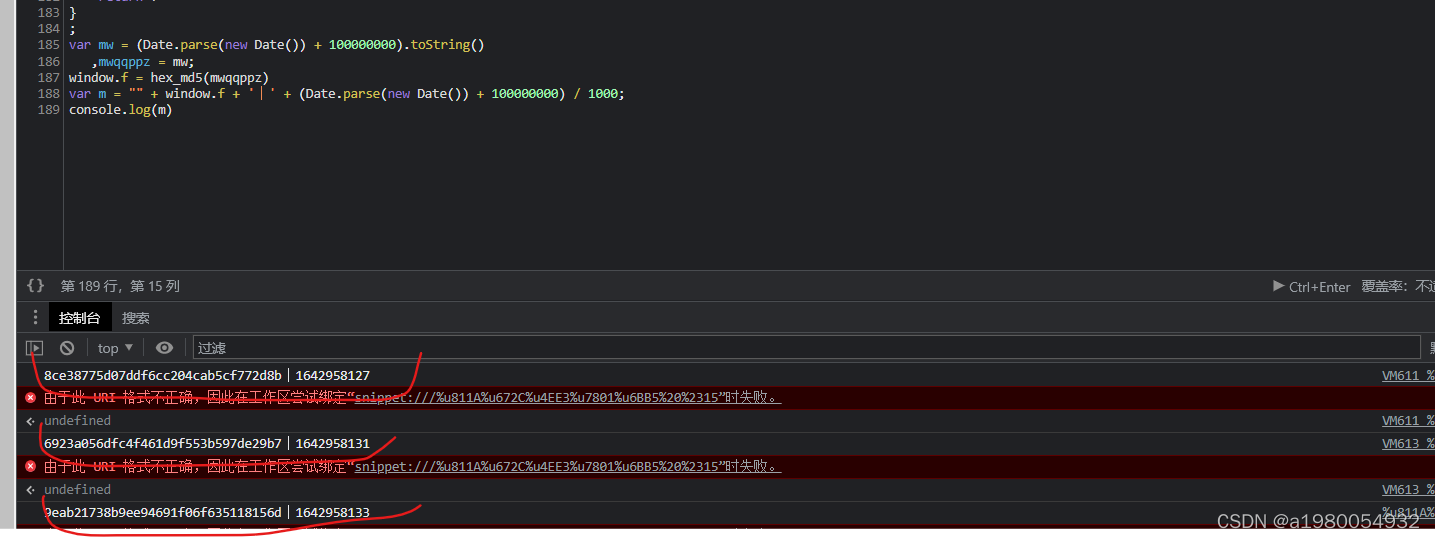 按下F12,在控制台调用方法,执行一下代码,发现报错,
