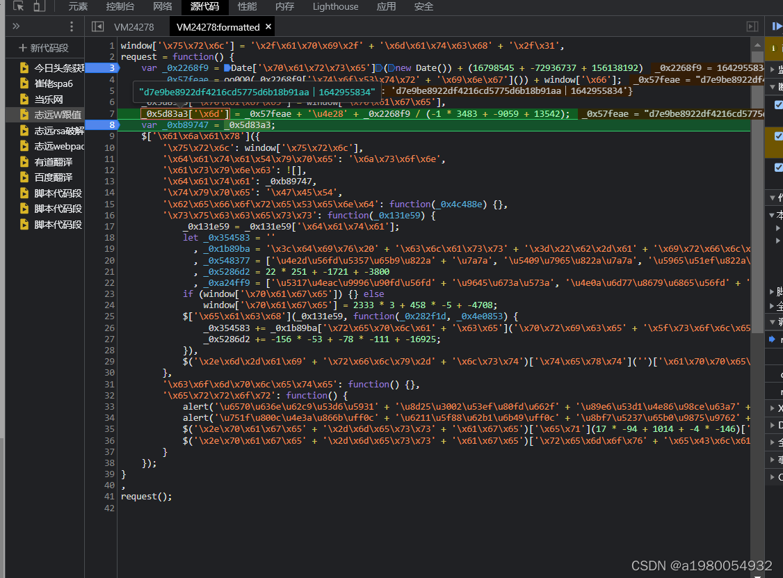 发现这个_0x5d83a3['\x6d']就是m的值,看看代码,混淆了