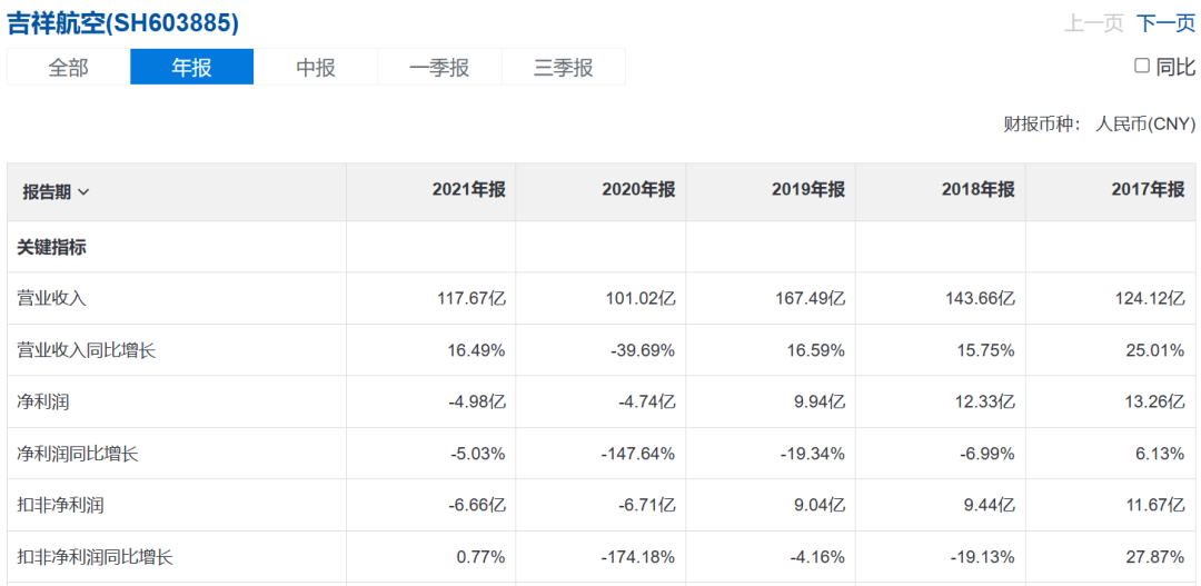进入到2021年,吉祥航空全年117.7亿元的收入已经恢复至2019年的70.27%,归属净利润从2020年的-4.738亿元扩大至-4.976亿元,从行业整体来看已可圈可点。