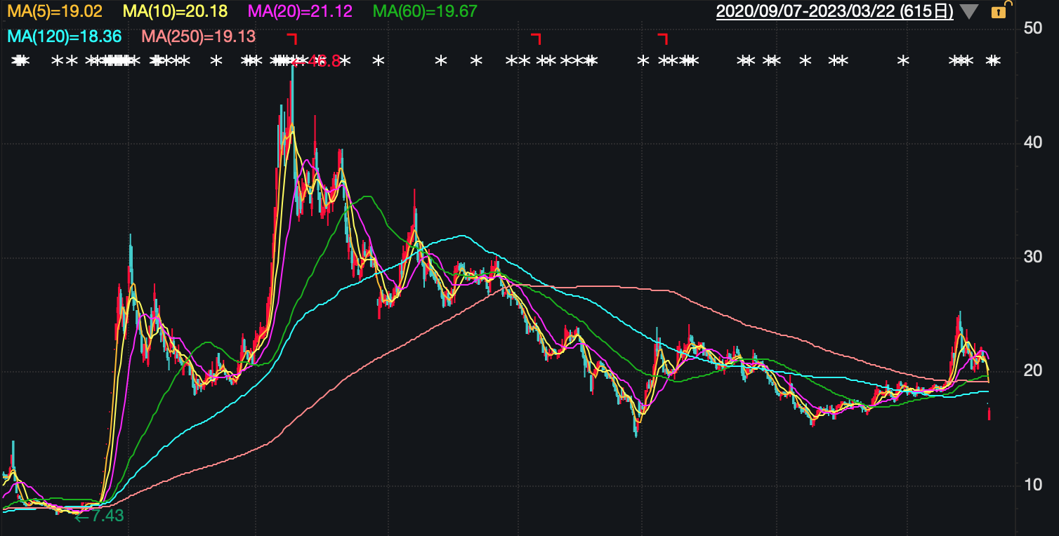 大豪科技(603025.SH)于3月17日发布公告称,决定终止收购红星二锅头相关的资产重组和募集资金事项。随后,其股价3月20日、21日一字跌停,昨日收盘价为17.24元,总市值为159.35亿元,两日之内已蒸发37.42亿市值。