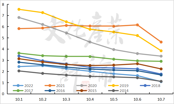 △图3 2014-2022年国庆档走势(不含服务费)