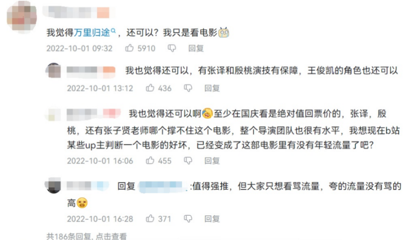 △网友评论(来自轩邈Elias《就这水平?待在家里不香吗?《万里归途》《平凡英雄》《钢铁意志》2022国庆档排雷报告》)