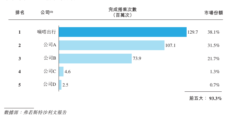 根据招股书,2021年国内顺风车市场中,前3大顺风车平台市占率合计为91.3%。其中,嘀嗒出行市场占有率第一为38.1%。