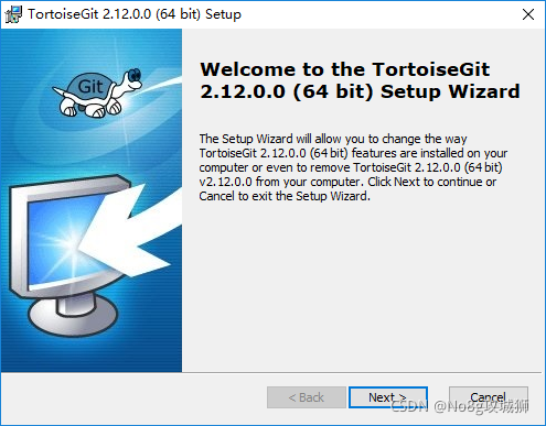 要安装 Git 的客户端工具 TortoiseGit,双击运行 TortoiseGit-2.12.0.0-64bit.msi 安装包,一直执行“下一步”即可。