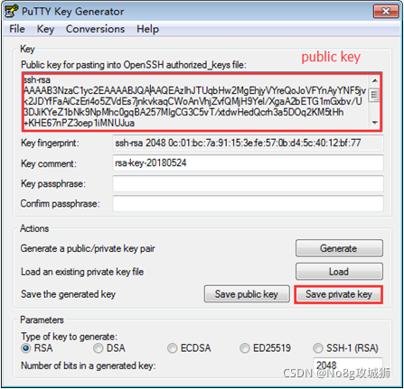 先点击Save private key把私有的密钥存起来,记住存储的位置,后面会用到