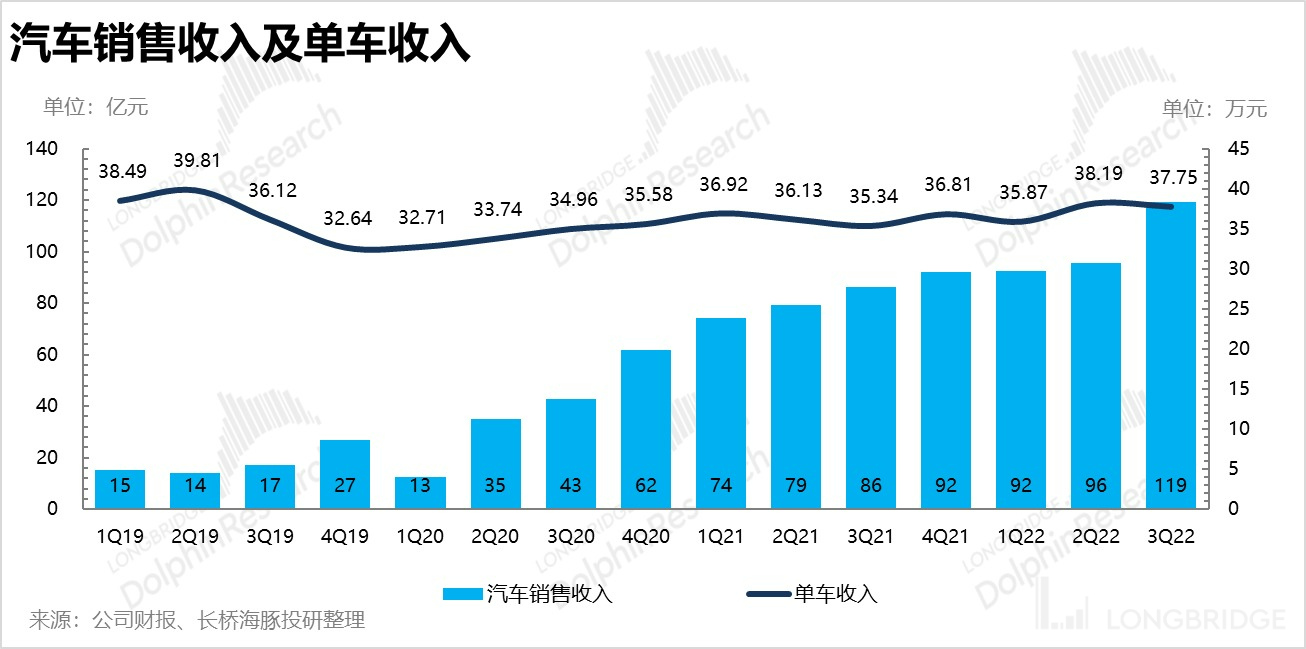 1、低销量明牌下,收入勉强及格:三季度收入 130 亿元,与市场基本一致,在销量已知的情况下,汽车单价和其他服务性业务收入不算埋雷,收入端无功无过。