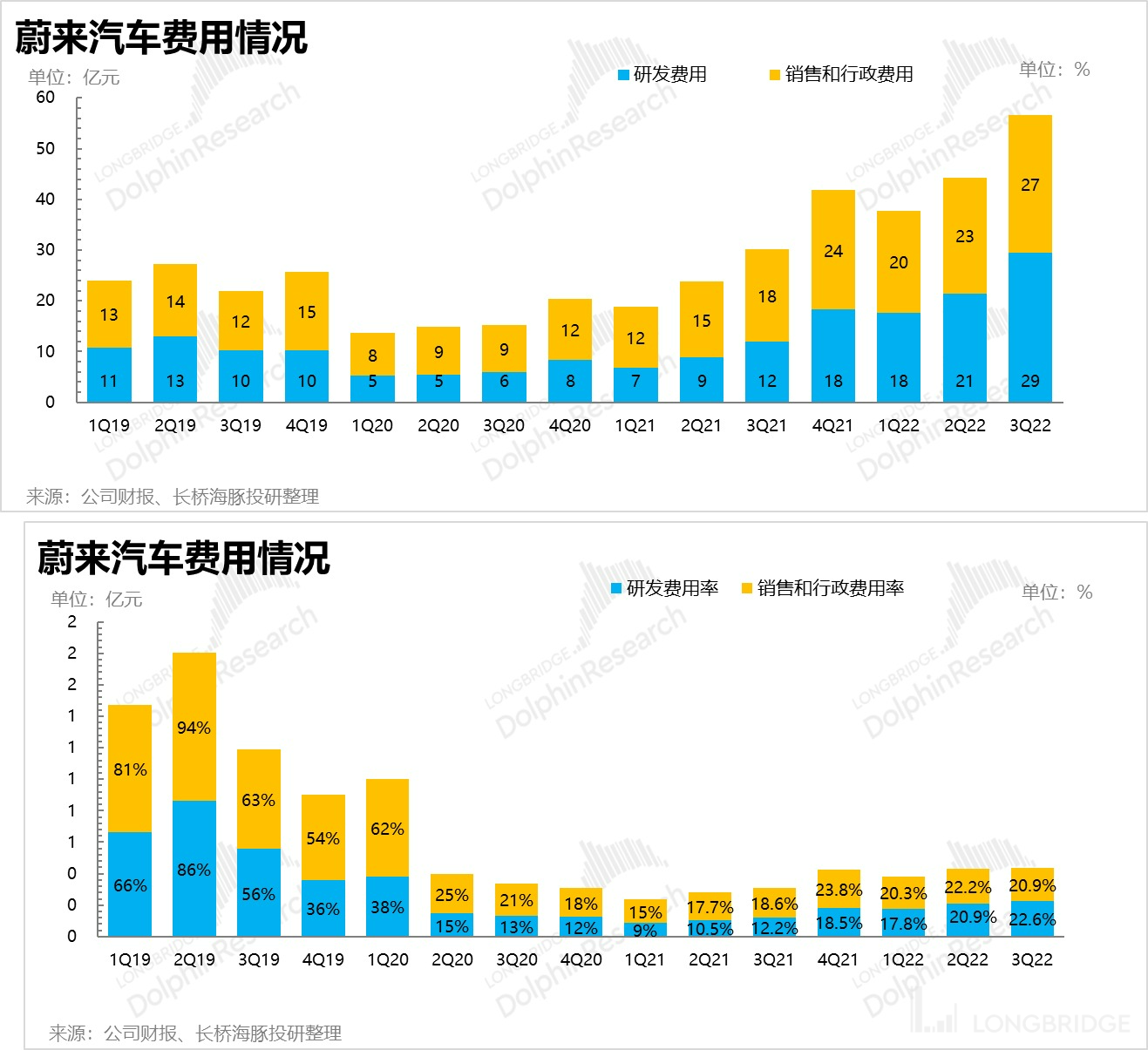 在当前新品牌、新车型、新产能、电池技术、自动驾驶、芯片等等排队需要研发的情况下,研发投入绝对值只能节节攀升,靠销量放量来分摊研发成本,显然这个季度销量回升慢,没有摊薄的效果,不过下个季度 ET 5 真正放量之后,研发费用率应该会回落一些。