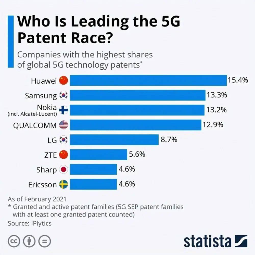 我们知道,华为一直以来在研发领域都维持很高的投入,专利数量全球领先,尤其是5G相关的专利全球第一。