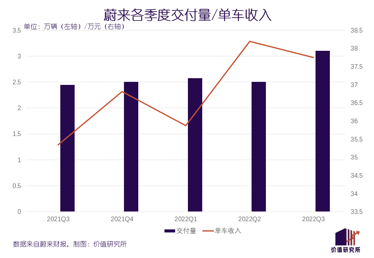 数据显示,蔚来三季度汽车销售毛利率录得16.4%,低于市场预期的17.5%,也不如二季度的16.7%和去年同期的18%。此外,单车收入也较二季度的38.19万元下滑至37.75万元。