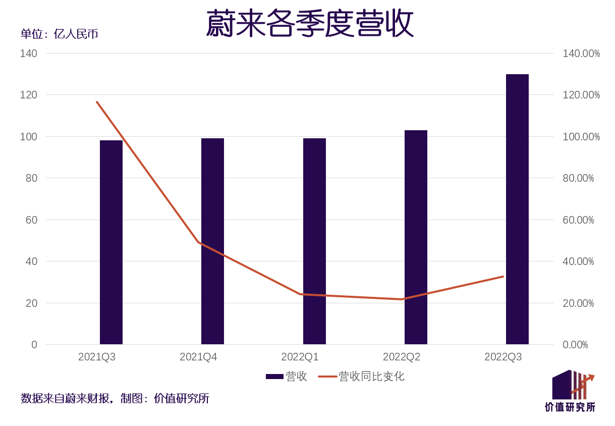 一方面,三季度总营收录得130.02亿元,同比增长32.6%,创下历年新高。从增长角度看,三季度营收同比增速也高于今年前两个季度的24.17%和21.83%。究其原因,中国汽车市场“金九银十”的定律仍在延续,蔚来也抓住了9月份的一波销售高峰。