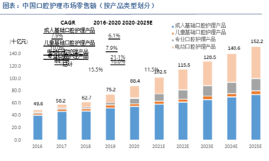 对于消费者来说,牙膏是日常用品,一支牙膏能够使用一个半月左右,在消费榜单中属于长期消耗品,非常考验企业的经营能力,不过也正是这种需求连绵不断的商品,促使口腔清洁市场规模不断增长。