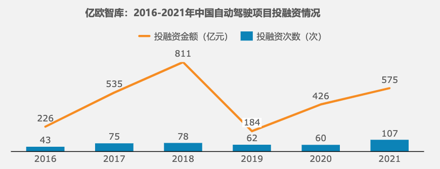 反映在融资信息上,数据显示2021年以来,自动驾驶行业再次迎来投融资热潮,总金额达到575亿元,融资次数107次,相较于2020年实现增长;舆论态势的激烈自然不必多说。