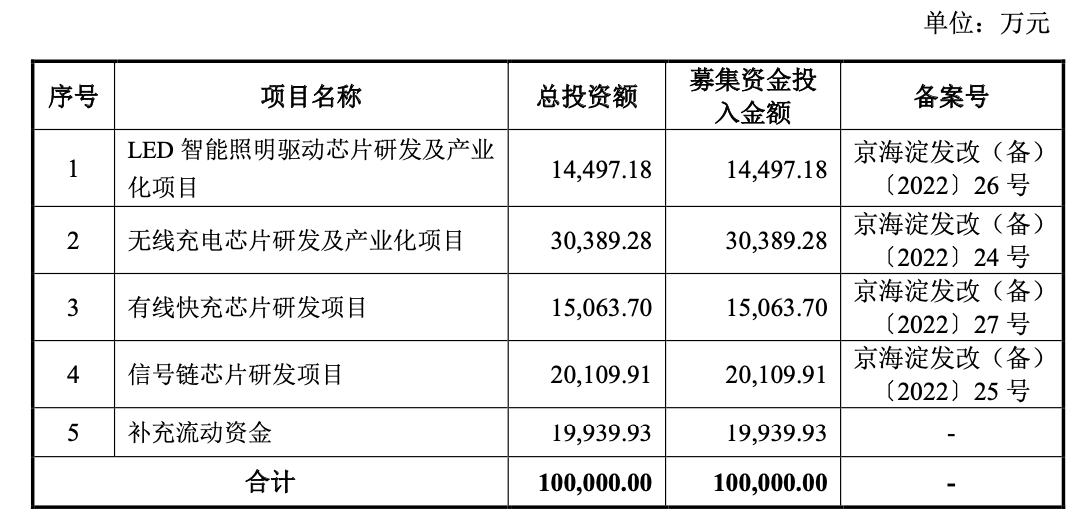 本次IPO美芯晟拟募集资金10亿元,其中有1.51亿元用于有线快充芯片研发项目、2.01亿元用于信号链芯片研发项目,意在进一步扩充公司产品种类、完善公司业务布局。