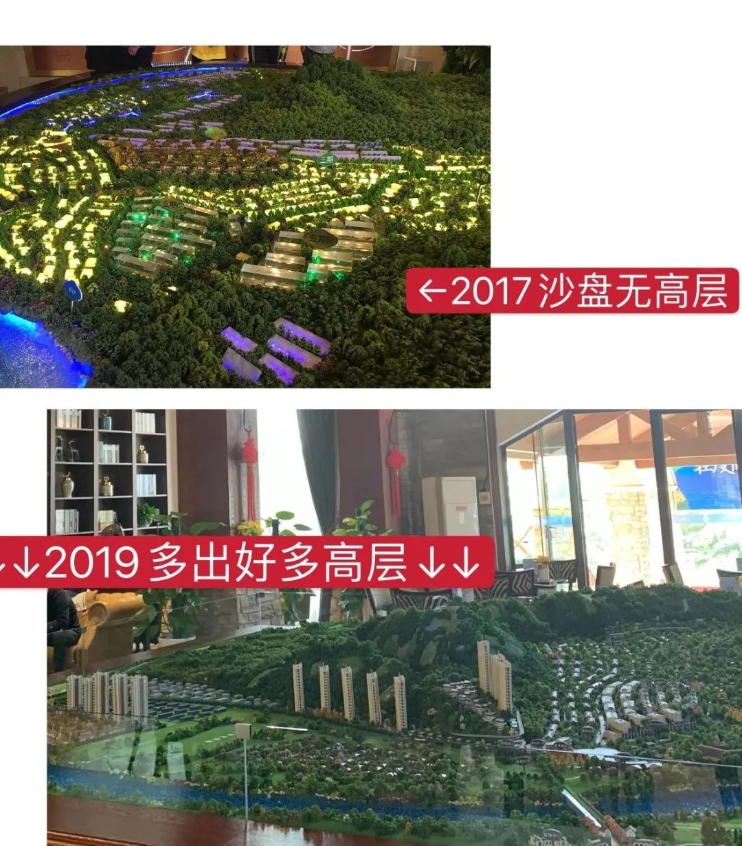 现在售楼处的沙盘都大变样。在原来的基础上,多了好几栋高层建筑。此外,西南面的山上还要炸山盖三栋高楼,完全遮挡了原有住宅的视线。